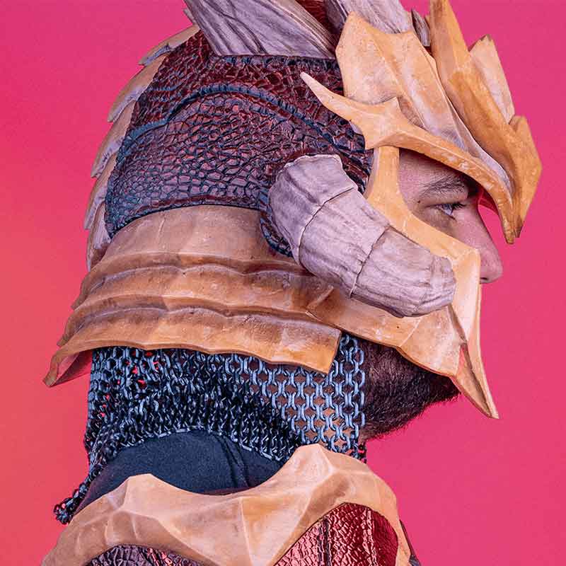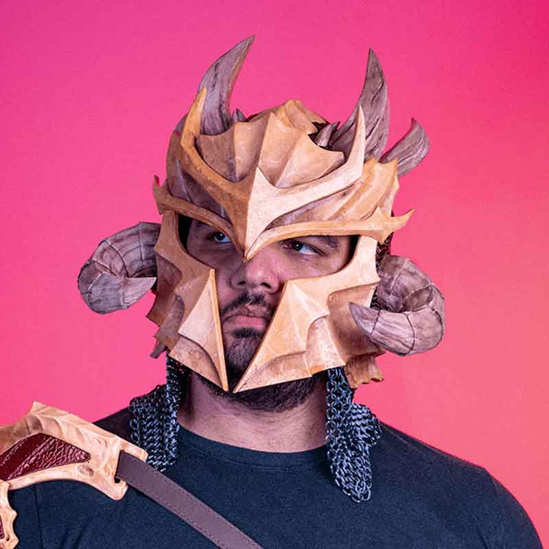A helmet with bone-like shapes and a tough, intimidating design. Perfect for a strong, warrior look.