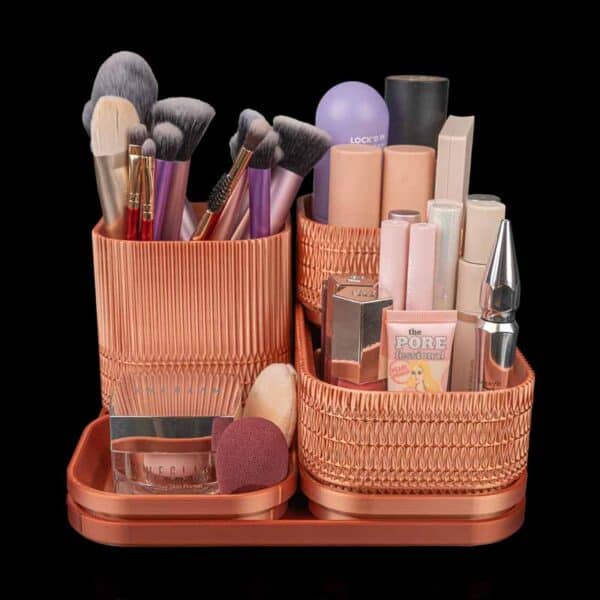 Your space with style. These organizers keep your brushes, jewelry, and products neatly displayed with a carved texture that’s as elegant as it is organized.