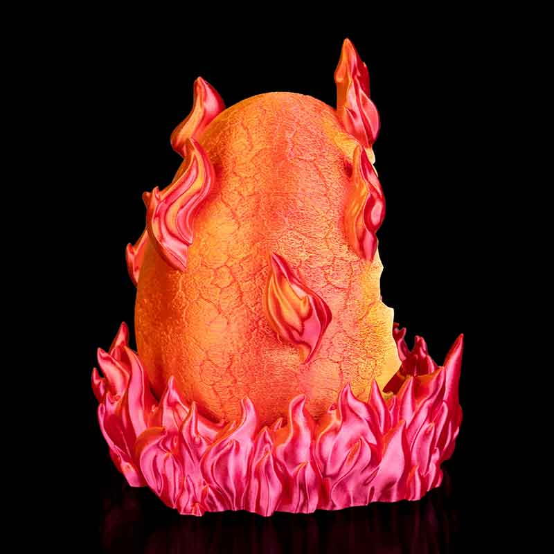 A warm-hearted hatchling curled inside a cozy ember-lit shell, casting a gentle fiery glow without the heat.