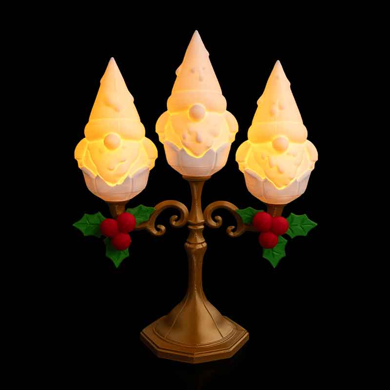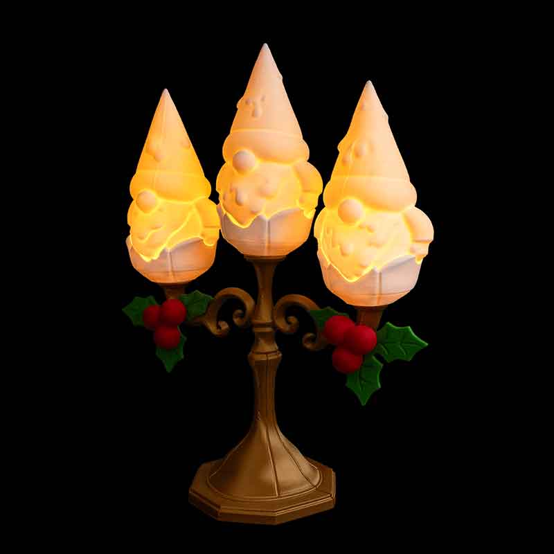 A team of hard-working gnomes keeping the lights on, literally. Whimsical, bright, and full of Christmas spirit.