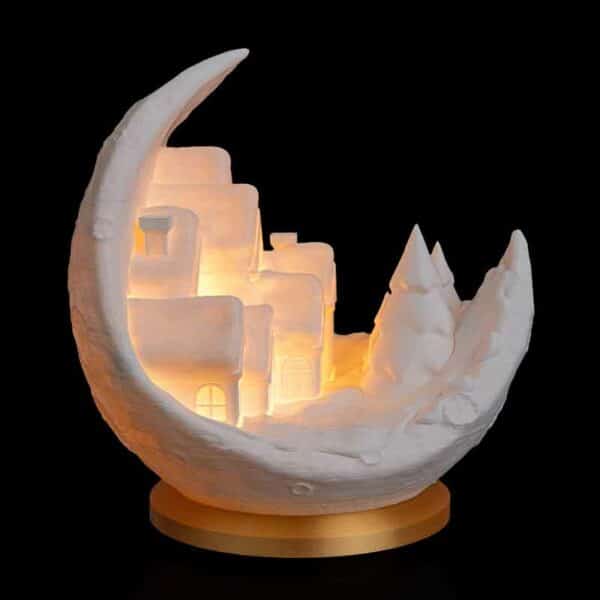 Where Christmas meets the cosmos. A tiny moonlit village perched on a glowing lunar surface, dreamy, peaceful, and out of this world.